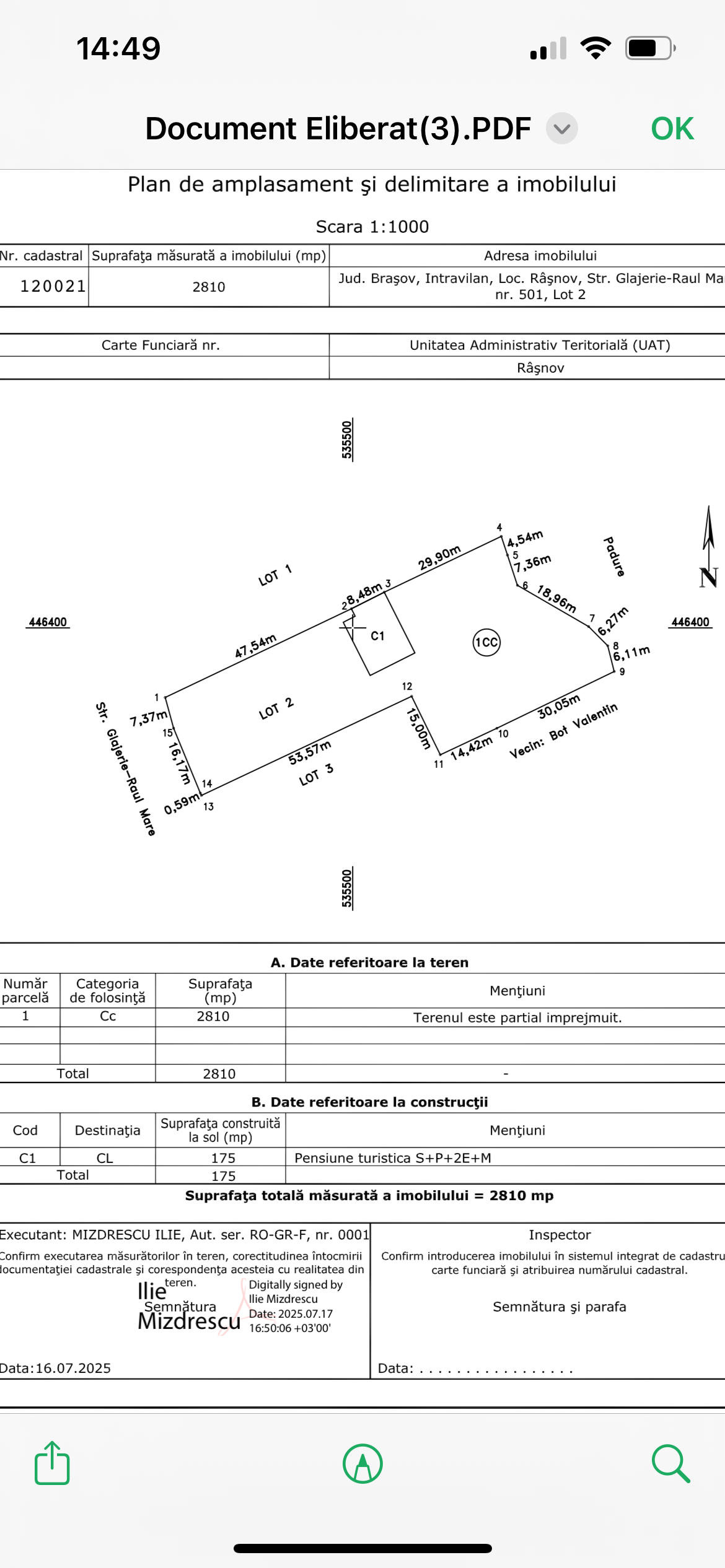 Proprietar urgent vand teren de 2800 mp cu cladire subsol parter si 3 nivele in suprafata de 600 mp terenul are apa canalizare - fosa lumina 380 intabulare, carte funciara, acte la zi, pret 295000 euro, accept si variante sau plata esalonata.