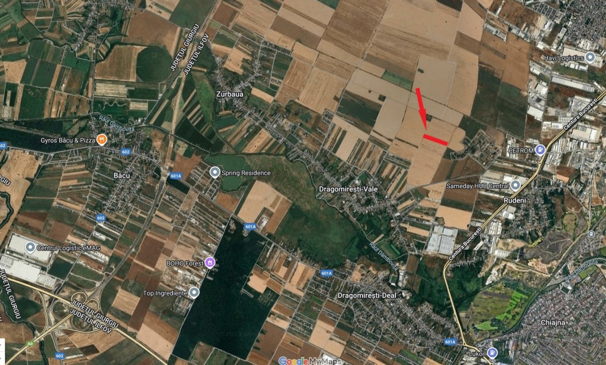 Terenul dispune de acces rapid la Centura Bucuresti si Autostrada A1, fiind usor de conectat la principalele rute comerciale si logistice ale Capitalei. Zona este in plina dezvoltare, cu numeroase proiecte industriale si logistice deja functionale sau aflate in derulare, ceea ce transforma aceasta proprietate intr-o oportunitate de investitie.