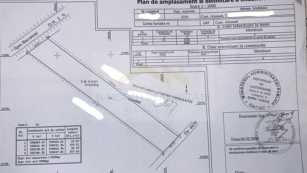 We present for sale a plot of land measuring 3,228 sqm, featuring a street frontage of 22.07 meters on the Bucharest–Urziceni main road.
