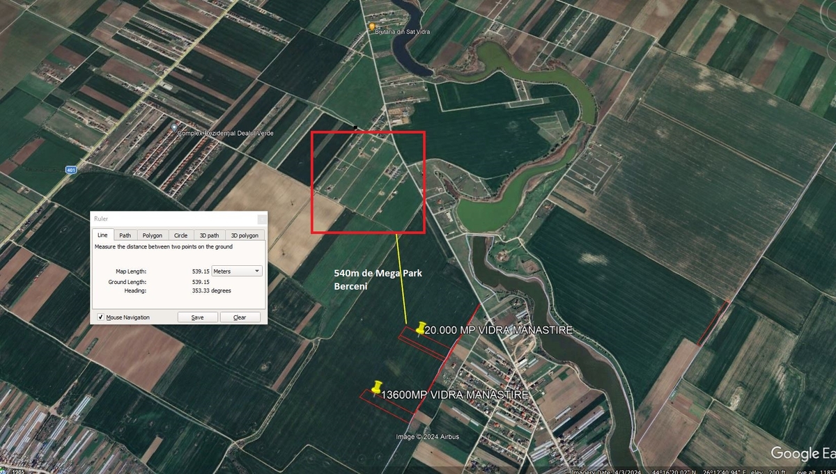 Ambele loturi la doar 539 m de Mega Park Berceni. Distante exacte si pozitii ilustrate in pozele atasate (inclusiv masuratori Google Maps).