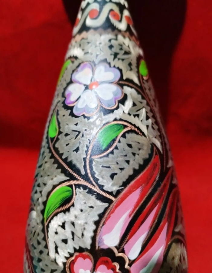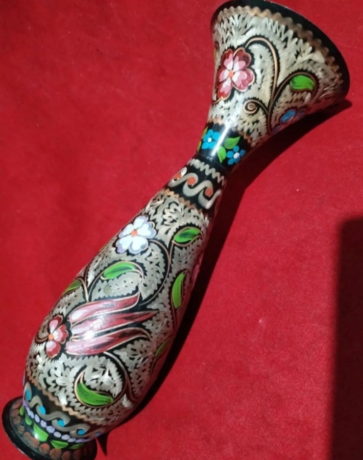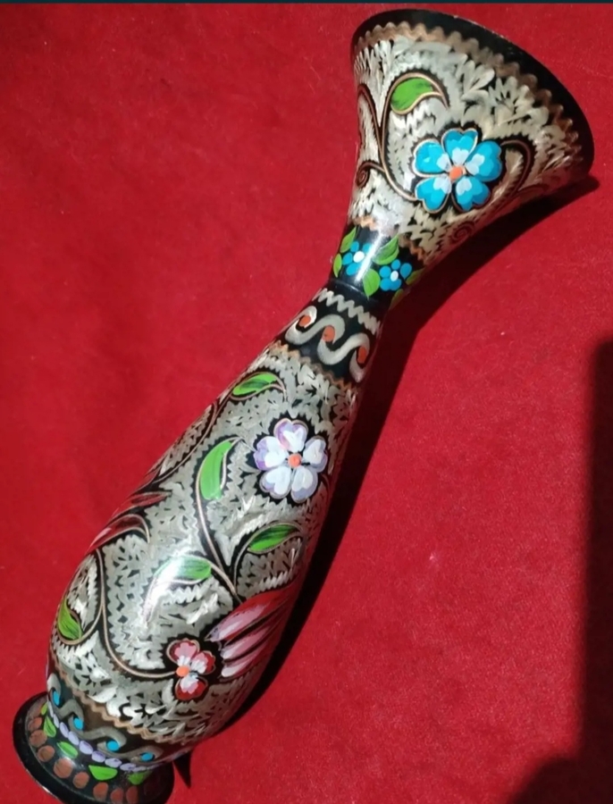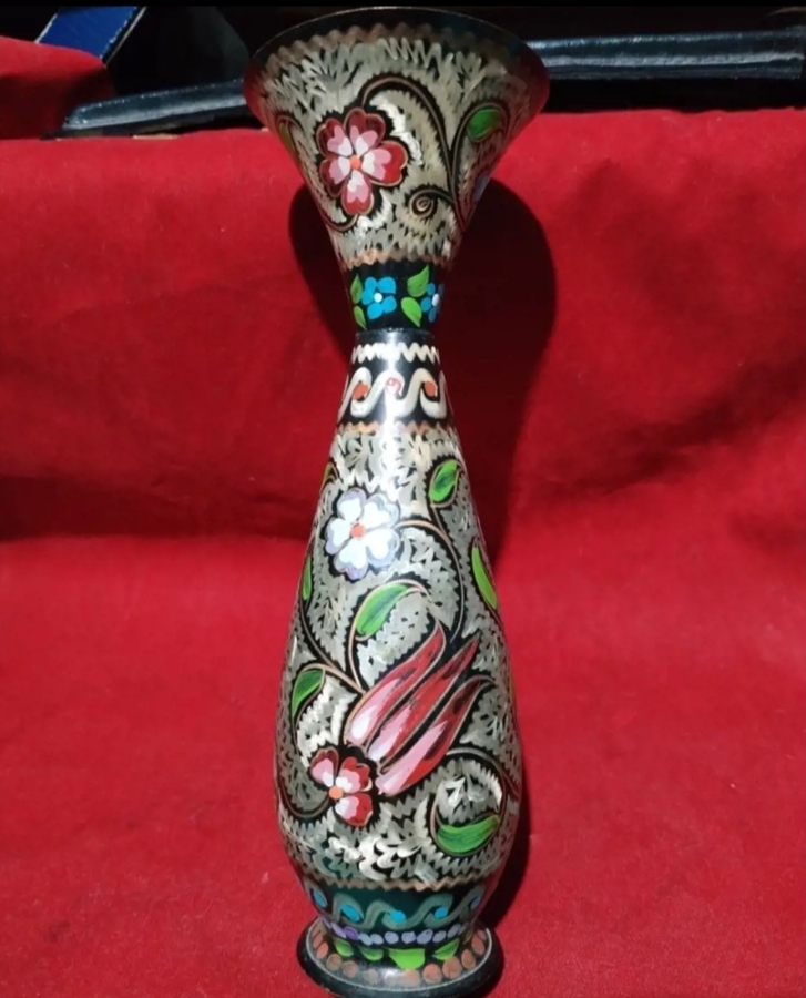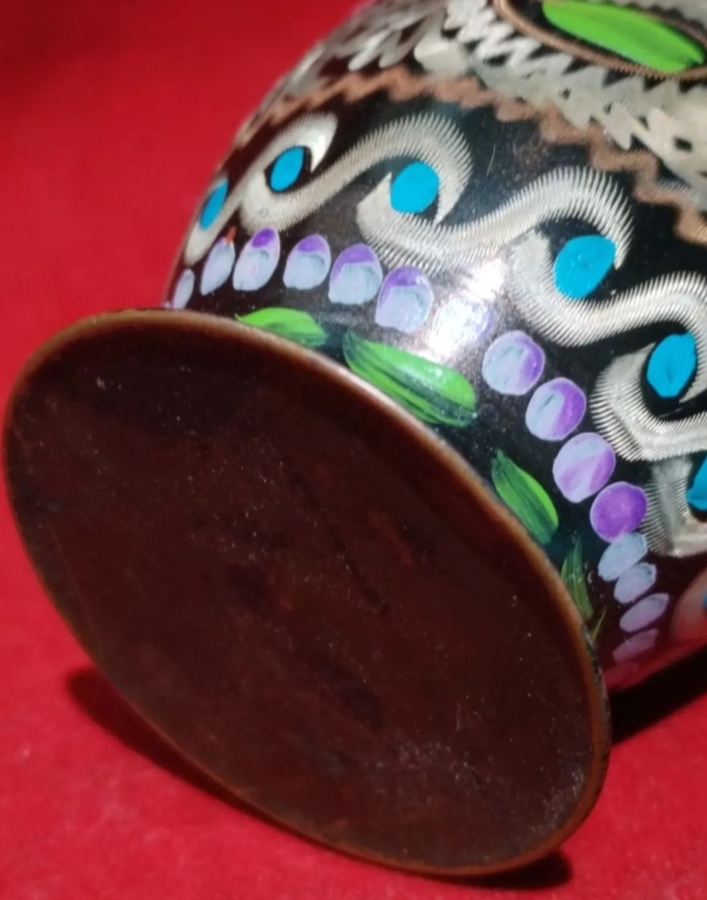 Vaza decorativa vintage marocana din cupru, pictata manual in email.