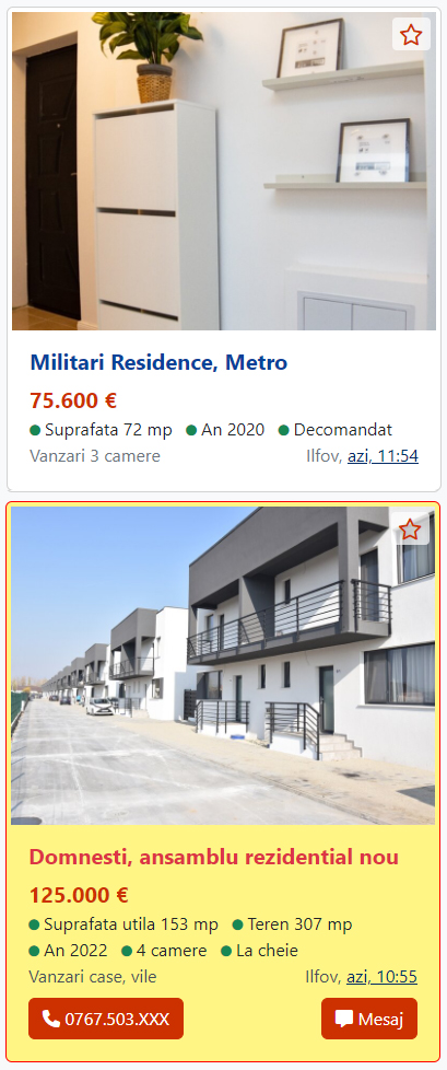 - • plaseaza anuntul pe prima pozitie in orice listare de anunturi din care ar putea face parte (fie o categorie, fie o filtrare), dar mai putin in cadrul listelor in care este folosita si cautarea dupa unul sau mai multe cuvinte cheie (relevanta la cautarea dupa cuvinte cheie este mai importanta decat data unui anunt)