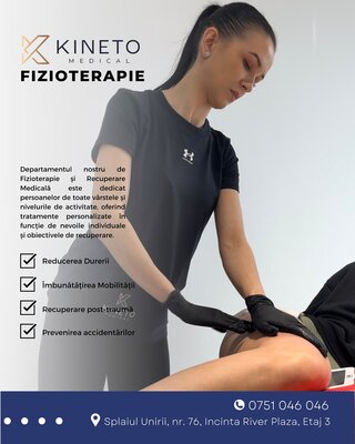 Centrul Kineto Medical este locul unde gasiti solutii personalizate pentru fiecare nevoie medicala. Ne concentram pe îmbunatatirea performantei, starii de sanatate si recuperarea rapida, oferind programe adaptate individual. Cu o echipa dedicata si o abordare integrata, suntem aici pentru a va...